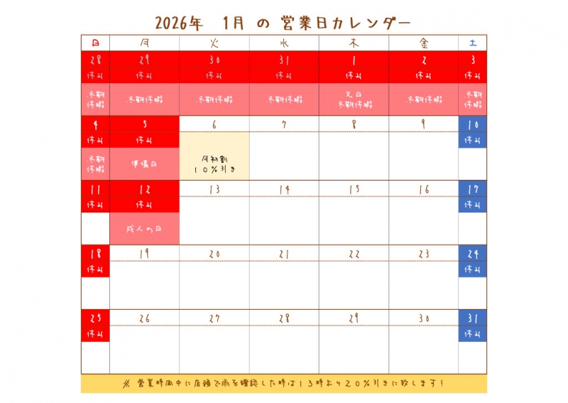 2026年の「月初割」の日は1/6(火)となります~